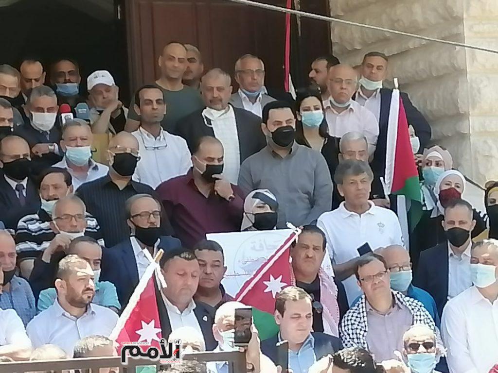 واشار خلال الوقفه التضامنية التي أدارها عضو مجلس النقابة الزميل فيصل بصبوص اننا نقف خلف جلالة الملك عبدالله الثاني والجهود الدبلوماسية الكبيرة التي يقوم بها على المستوى الدولي للدفاع عن الحقوق الفلسطينية وكسب التأييد الدولي لحقوقهم المشروعة وما يقوم به من دور إنساني كبير في تعزيز صمود الشعب الفلسطيني على أرضه من خلال ارسال المساعدات الانسانية والطبية للأشقاء في الضفة الغربية وقطاع غزة.