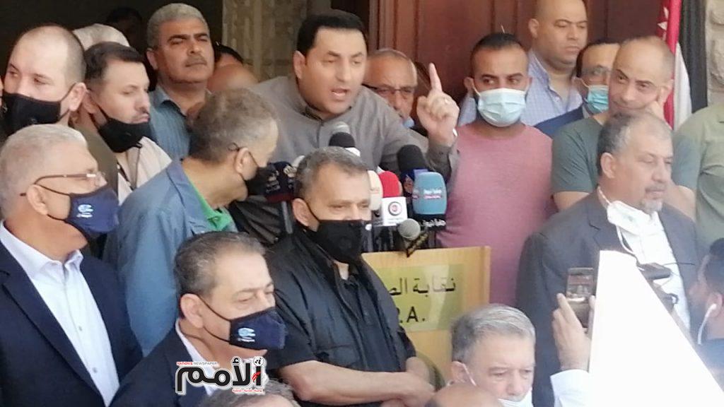 وطالب نقيب المهندسين الزراعيين عبدالهادي الفلاحات خلال كلمه له باسم مجلس النقباء الحكومة بالاستجابة لنداءات الشعب والنواب وطرد سفير الاحتلال من عمان وسحب السفير الأردني لدى الكيان الصهيوني والغاء اتفاقيتي الغاز و وادي عربة.