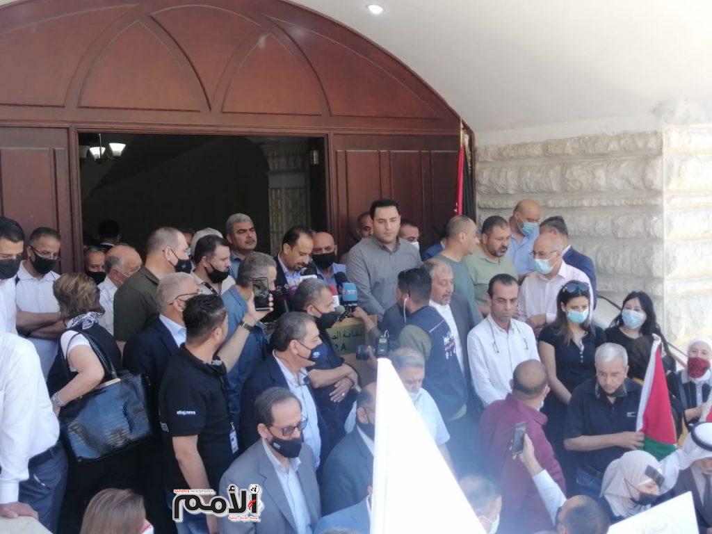 من جانبه حيا النائب ينال فريحات اصحاب الكلمة والقلم الحر في الاردن ونقابة الصحفيين الاردنيين الذين تقومون وبشكل مستمر في تغطية الوقفات التضامنية التي تنظمها مختلف الفعاليات للتنديد بانتهاكات الاحتلال بحق الشعب الفلسطيني والصحفيين