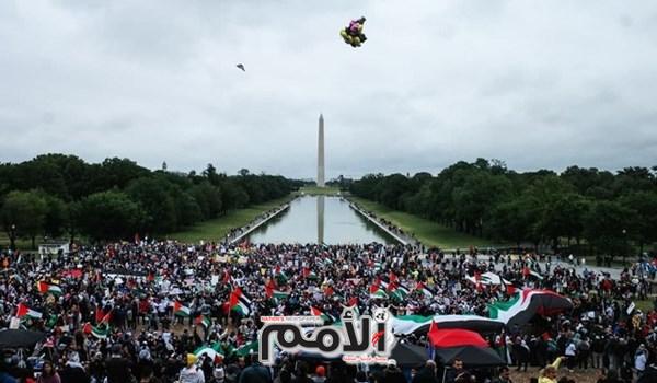 وجاءت المظاهرة بدعوة من المؤسسات الفلسطينية والعربية والإسلامية العاملة في الساحة الأميركية، وانطلقت من أمام نصب لينكون التذكاري وصولاً إلى الساحة المُطلة على البيت الأبيض.