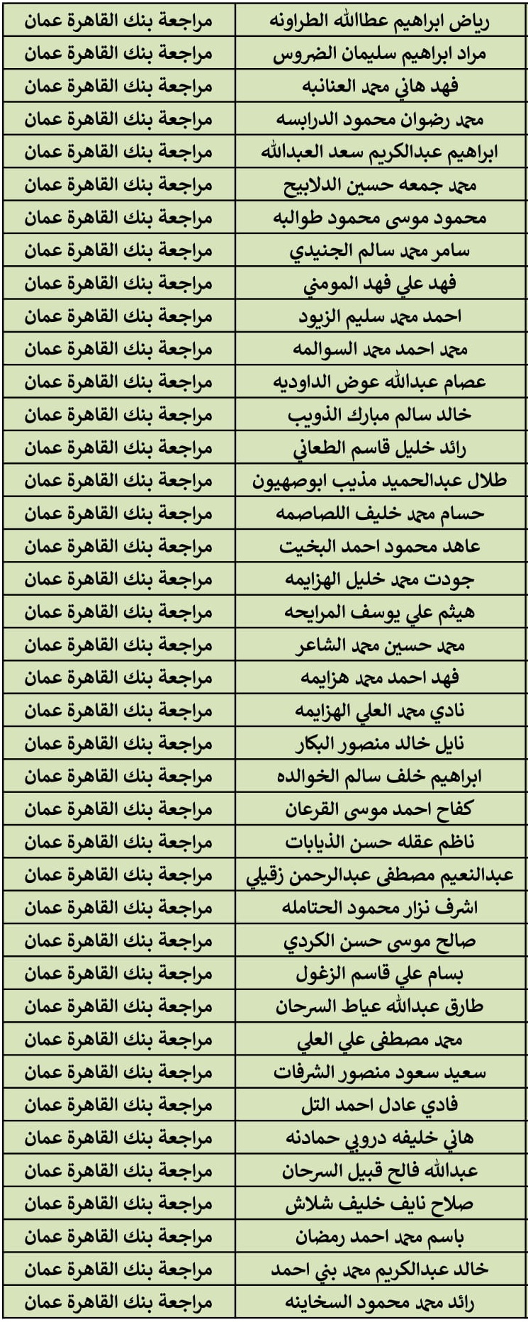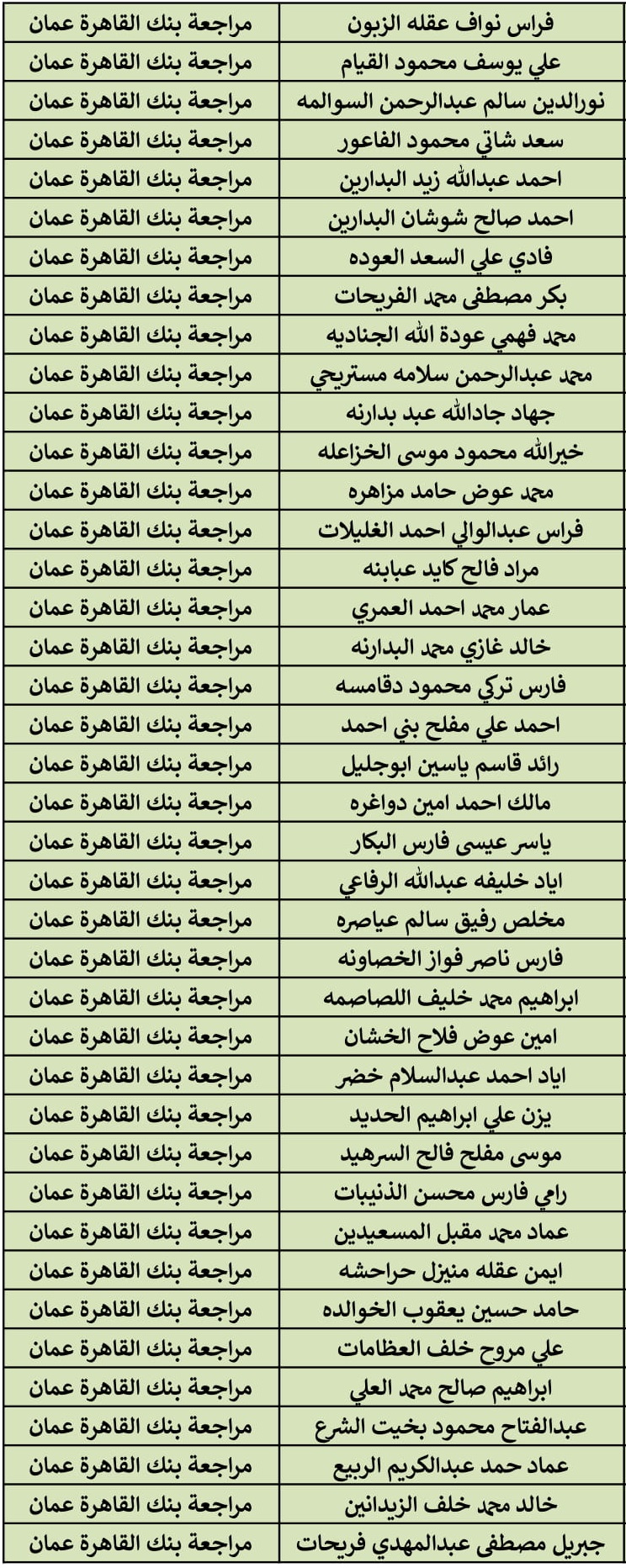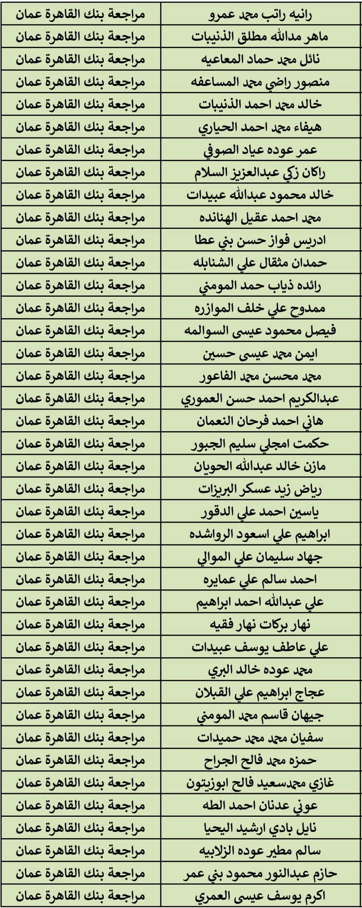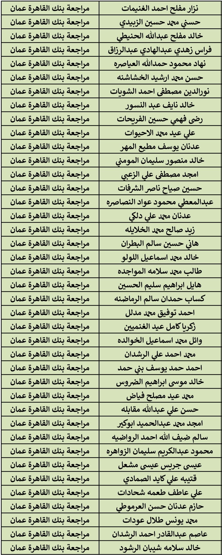 أعلنت القيادة العامة للقوات المسلحة الأردنية – الجيش العربي/ مديرية مؤسسة الإسكان والأشغال العسكرية بأن ضباط الصف والأفراد المبينة أسماءهم أدناه قد استحقوا الحصول على القرض من صناديق الإسكان العسكري مبيناً كشف بأسماء المستحقين لقرض صندوق الإسكان العسكري لدفعة شهر حزيران لعام 2021.