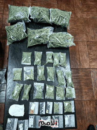 واضاف الناطق الاعلامي ان القوة الامنية تمكنت من القاء القبض على ذلك الشخص المشبوه وبتفتيش مكان وجوده ضُبطت ثلاثة اسلحة نارية احدها اوتوماتيكي اضافة الى كميات كبيرة من مادة الماريجوانا المخدرة،منها جزء مزروع داخل قوارير وجزء آخر منشف ومعد للبيع داخل اكياس متنوعة الاحجام اضافة الى كميات متنوعة من الحبوب المخدرة وكف من مادة الحشيش المخدرة وبوشرت التحقيقات معه تمهيداً لإحالته لمدعي عام محكمة أمن الدولة .