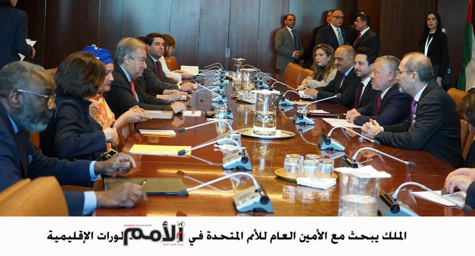 وتناول اللقاء الأزمات الإقليمية، ومساعي التوصل إلى حلول سياسية لها، تعيد الأمن والاستقرار لشعوبها، حيث أكد جلالة الملك على الدور المهم للأمم المتحدة بهذا الخصوص.
