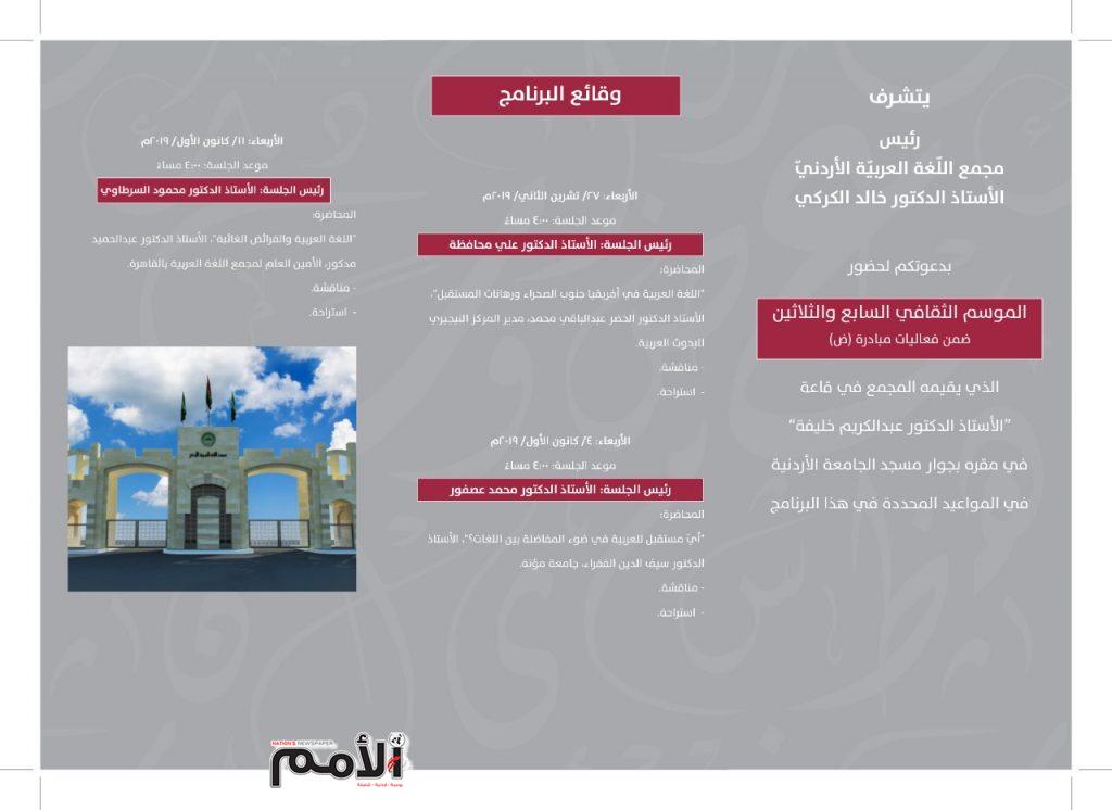ويشارك في الموسم الثقافي لهذا عدد كبير من الباحثين من الأردن، ونيجيريا، ومصر، حيث بشتمل البرنامج على محاضرات عديدة وهي : اللغة العربية في أفريقيا جنوب الصحراء ورهانات المستقبل، يقدمها مدير المركز النيجيري للبحوث العربية، الأستاذ الدكتور الخضر عبدالباقي محمد ، وأيّ مستقبل للعربية في ضوء المفاضلة بين اللغات، يقدمها الأستاذ الدكتور سيف الدين الفقراء من جامعة مؤتة، واللغة العربية والفرائض الغائبة، يقدمها الأستاذ الدكتور عبدالحميد مدكور الأمين العام لمجمع اللغة العربية بالقاهرة.