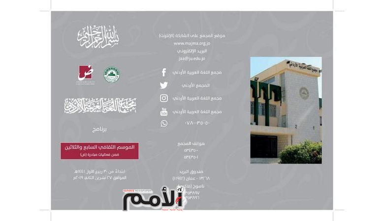عمان – الامم – يبدأ مجمع اللغة العربية الاردني موسمه الثقافي السابع والثلاثين في 27 من شهر تشرين الثاني الجاري ، ضمن فعاليات مبادرة “ض”، في قاعة الأستاذ الدكتور عبدالكريم خليفة في مبنى المجمع في تمام الساعة الرابعة مساءً، برعاية رئيس المجمع الدكتور خالد الكركي .