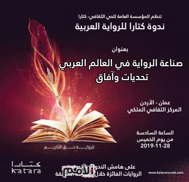 تنظم المؤسسة العامة للحي الثقافي- كتارا عند السادسة من مساء يوم الخميس الثامن والعشرين من الشهر الجاري في قاعة المؤتمرات المركز الثقافي الملكي ندوة بعنوان : “صناعة الرواية في العالم العربي.. تحديات وآفاق”