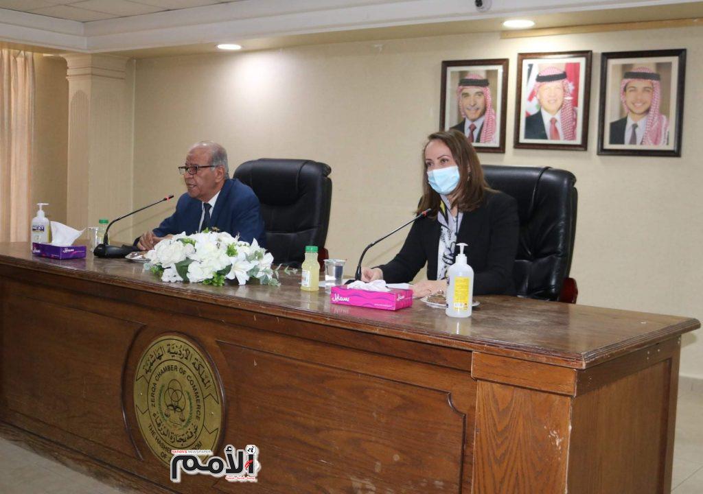 ورافق الوزيرة كل من مدير عام مؤسسة المواصفات والمقاييس الأردنية المهندسة عبير الزهير وطاقم العمل المختص بوزارة الصناعة والتجارة والتموين ممثل بأمين عام الوزارة بالوكالة المهندس حسن العمري ومدير السياسات التجارية الخارجية المستشار زاهر القطارنة ومندوب مديرية التنمية الصناعية حسان النسور ومدير صناعة وتجارة الزرقاء المهندس عماد البزور، وكان في استقبالهم رئيس الغرفة حسين شريم وأعضاء مجلس الإدارة عماد أبو البندورة وزياد البغال والمهندس باسم الكيلاني والمهندس موسى أبولاوي وخالد عبد الباري وفايز اسكاكا.