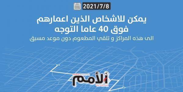 مراكز تطعيم من تجاوز 30 عاما دون موعد مسبق (اسماء)