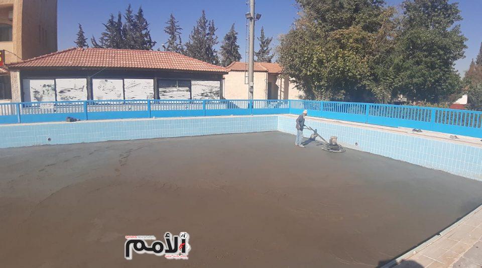 وأشار العزام الى أن أعمال الترميم تشتمل على أشغال الصيانة وتجديد البلاط القديم لبركة التدريب وبعض مساحات البرك الأُخرى،إضافة الى  تبليط الساحات والممرات حول البرك ببلاط مانع للانزلاق وغير ماص للماء، وتجديد الدرابزون حول بركة الغطس، منوها ان عمليات صيانة وتجديد للفلاتر والمضخات التحتية تتم  بافضل الانواع وأجودها.