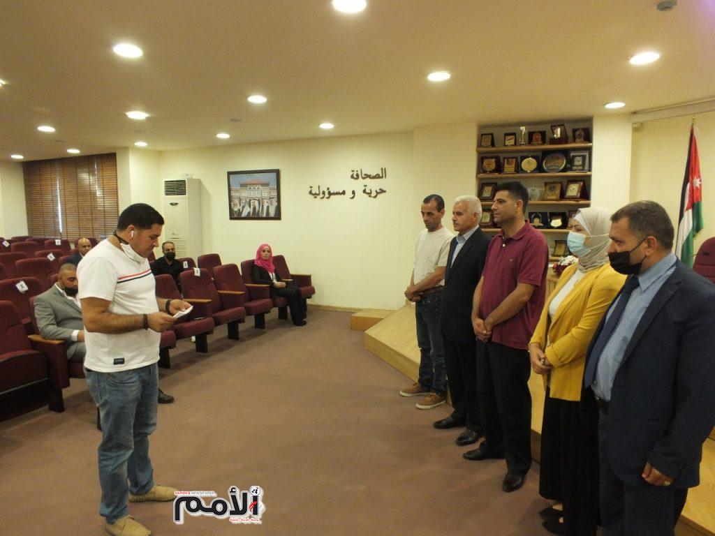 والزملاء الجدد الذين أدوا اليمين هم مجد محمود ضامن النوفل من مؤسسة الإذاعة والتلفزيون وعبد القادر خلف احمد البياضي والقلعة نيوز وزياد تيسير ابراهيم النصيرات من قناة رؤيا والدكتور محمد عبد الرحمن عبد الله المعايطة من جريدة الأنباط.