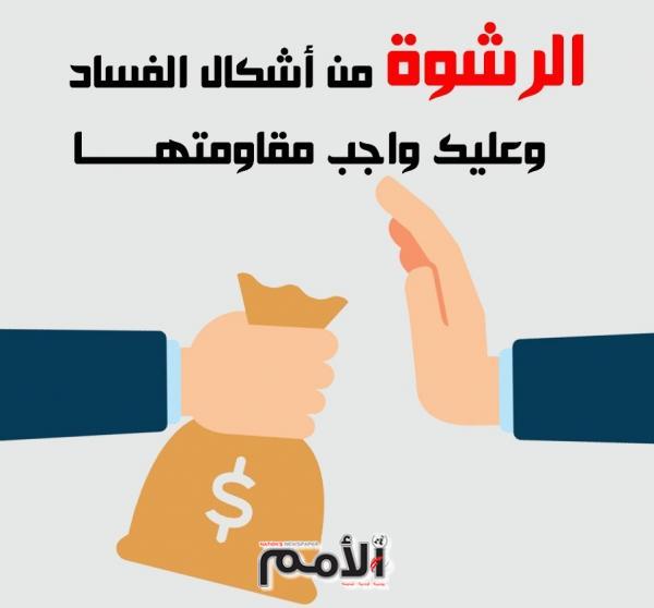 قالت هيئة النزاهة ومكافحة الفساد ضمن حملتها لمكافحة الرشوة، إن الإبلاغ عن الرشوة واجب ديني ووطني.