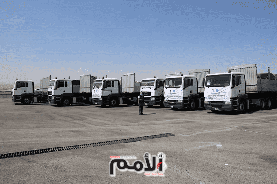 وتحمل القافلة المكونة من 14 شاحنة مواد اغاثية وغذائية وطبية ليتم تسليمها الى مديرية الصحة ومديرية التنمية الاجتماعية والجمعيات والمستشفى الميداني العسكري في قطاع غزة.