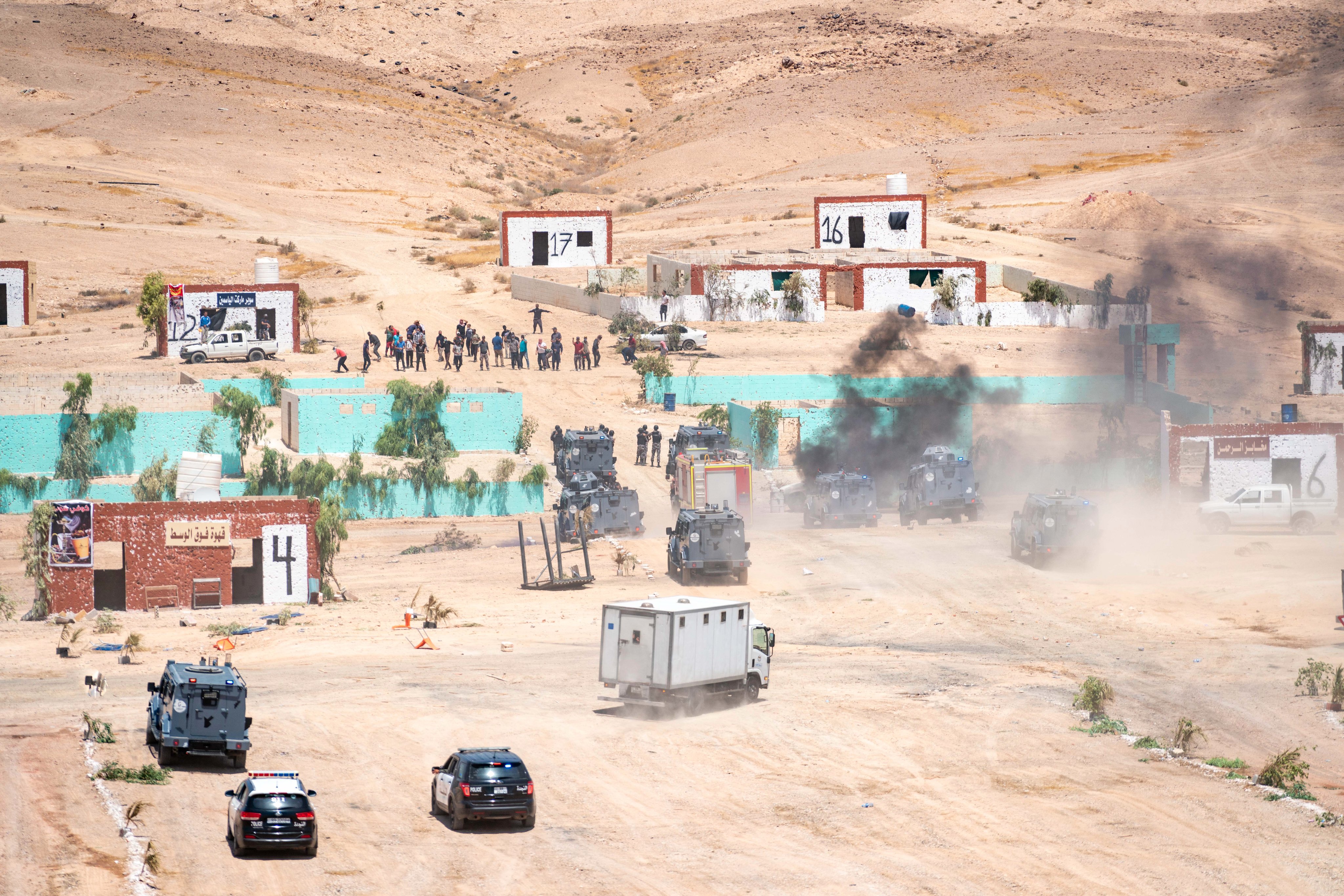 الملك يتابع تمرينا أمنيا في مركز الدرك (صور) شارك تابع جلالة الملك عبدالله الثاني، القائد الأعلى للقوات المسلحة، اليوم الاثنين، تمرينا أمنيا نفذته مديرية الأمن العام، من خلال قيادة قوات الدرك تساندها وحدات شرطية، وكوادر من الدفاع المدني، في مركز الدرك الأردني الإقليمي المتميز لتدريب حفظ النظام. Share and Enjoy !Shares