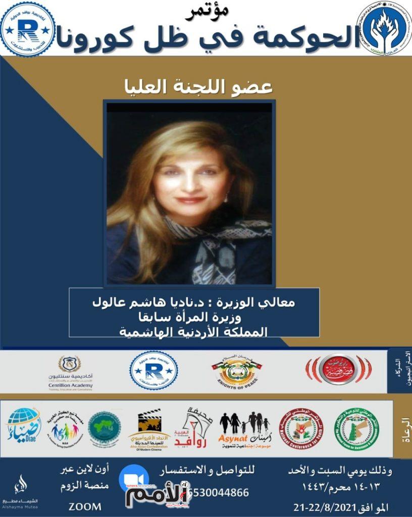 من جانبها قالت الوزير الأسبق ناديا العالول أهمية التعاون في ظل الحكومة للخروج من عنق الزجاجة “جائحة كورونا”، لا يمكن تطبيق أية رؤية على أرض الواقع دون وجود أهداف واستراتيجيات قابلة لتطبيق ولعل هذا المؤتمر أنموذج على أهمية الحكومة الرشيدة فلا حوكمة بلا ماسة ولا ماسة بلا حوكمة.