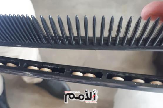 وأضاف الناطق الاعلامي بأنه تم ضبط المحتويات اثناء المعاينة الفعلية لشاحنتين قادمين من دولة عربية مجاورة محملتان بالألبسة والكسارات والحجر ومخبأة بطريقة احترافية داخل (الأحجار وامشاط الشعر).