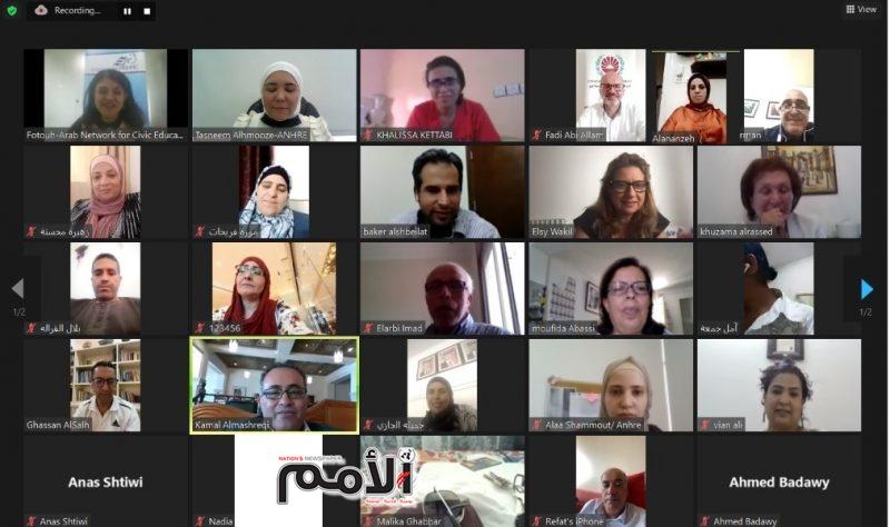 عقدت الشبكة العربية للتربية المدنية – أنهر جلسه حواريه اقليميه افتراضيه بعنوان “المجتمع المدني في ضفتي المتوسط إطار العمل الديمقراطي والمدافعه الاقليميه والاستدامه”.