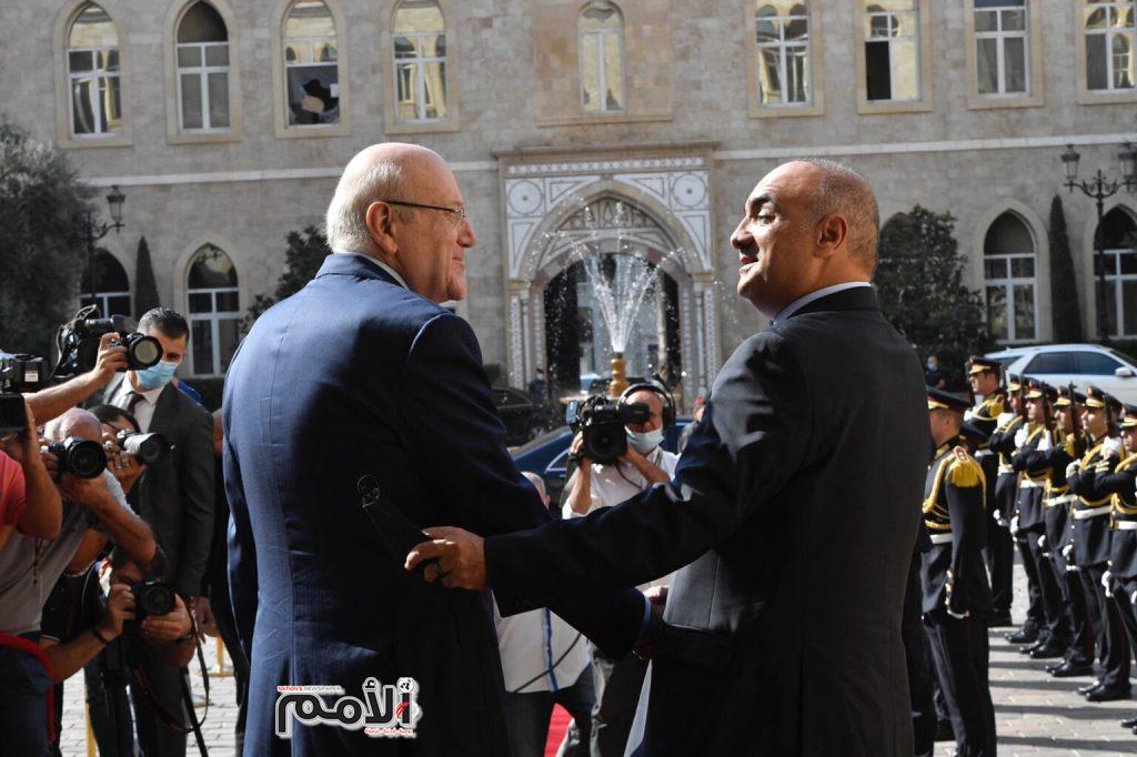 وكان قد جرى لرئيس الوزراء الدكتور بشر الخصاونة استقبال رسمي لدى وصوله السراي الحكومي ببيروت حيث كان في استقباله رئيس الوزراء نجيب ميقاتي.