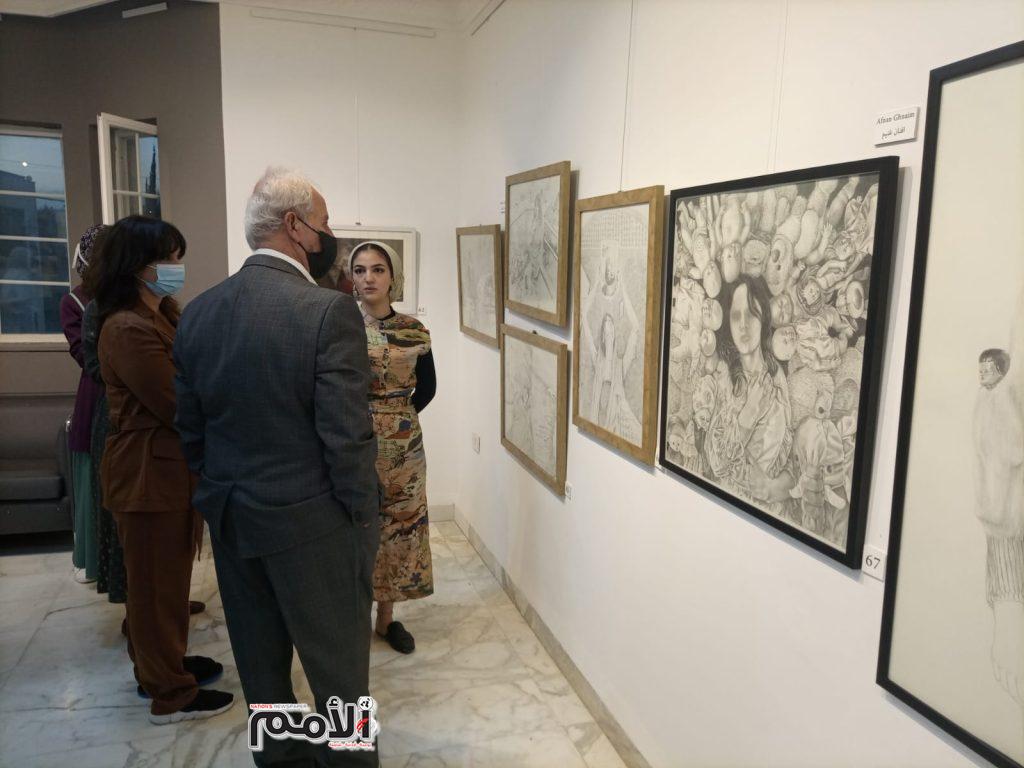 ويذكر أن المعرض يستمر لمدة اسبوعين، ويعرض 60 لوحة فنية.