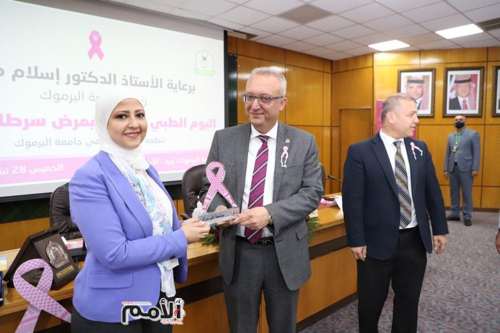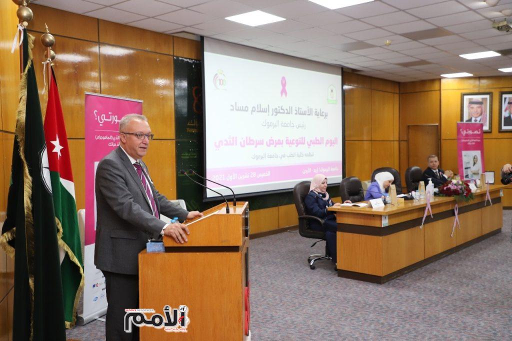 رعى رئيس جامعة اليرموك الدكتور إسلام مساد، فعاليات اليوم الطبي للتوعية بمرض سرطان الثدي، الذي تنظمه كلية الطب، بالتعاون مع مؤسسة الحسين للسرطان و البرنامج الأردني لسرطان الثدي، للتوعية بسرطان الثدي ضمن شهر التوعية العالمي الذي يصادف هذا الشهر من كل عام.