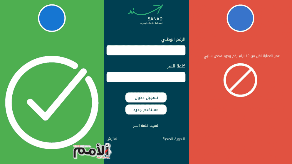 فيما يعني “سند أحمر” إلى أن الشخص لم يتلقَ المطعوم المضاد لكورونا، وليس لديه فحص بي سي آر، وبذلك سيمنع من دخول المنشآت.