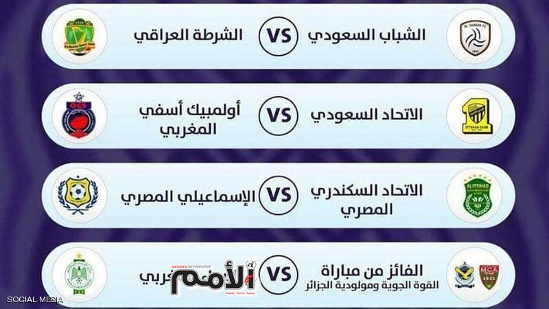 وأوقعت القرعة أولمبيك آسفي المغربي الذي أطاح بالترجي التونسي، بطل مسابقة دوري أبطال إفريقيا في العامين الأخيرين، في مواجهة اتحاد جدة السعودي، فيما يلعب الممثل الثاني للكرة السعودية، نادي الشباب مع الشرطة العراقي.
