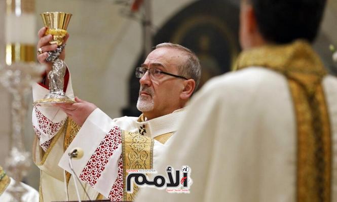 ألقى بطريرك القدس والأردن وسائر الديار المقدسة بيير باتيستا بيتسابالا عظة قداس منتصف الليل في كنيسة القديسة كاترينا (كنيسة المهد).
