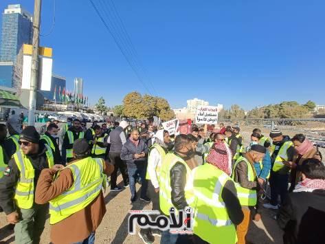 اعتصم عاملون في ميناء حاويات العقبة، صباح الإثنين، أمام مجلس النواب، في العاصمة عمان.