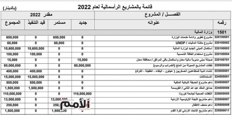 رفع حصة اللجنة الأولمبية ثلاث ملايين في مشروع الموازنة العامة لعام ٢٠٢٢ من قبل الحكومة الاردنية