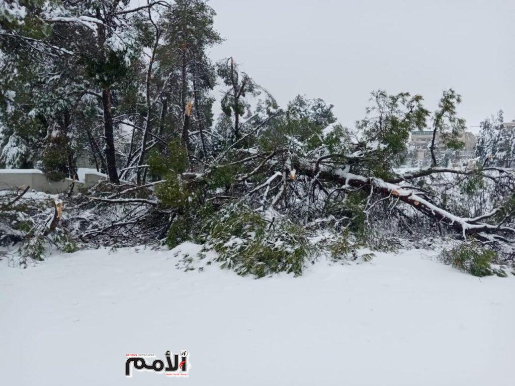 وخلف تراكم الثلوج بكثافة في الأردن مؤخراً، أضراراً بالغة بعدد من الأشجار، إذ أن غابة مدينة الحسين الرياضية، واحدة من أكثر الأماكن تضررا بالعاصمة، حيث دمرت الثلوج أكثر من 1500 شجرة، بالإضافة إلى تساقط الأشجار في مختلف الأحياء والمناطق.