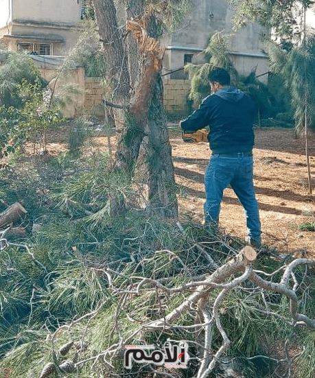 وأوضحت الامانة ان كوادرها العاملة في الميدان تقوم بقص اغصان الأشجار ونقلها بواسطة تراكتورات لموقع متفق عليه مع وزارة الزراعة لحين ارسال الوزارة لكوادرهم لإزالتها.