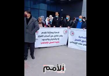 وجاء الاعتصام  الذي دعت اليه نقابة الممرضين والممرضات والقابلات القانونيات ، اثر ما وصفته النقابة بانسداد باب الحوار والتسويف من قبل وزارة الصحة في المفاوضات حول علاوة العمل الإضافي.