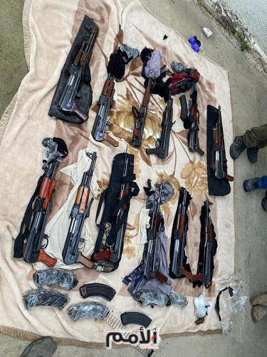 علن الناطق الاعلامي باسم الجيش الاسرائيلي افيخاي ادرعي ان الجيش الاسرائيلي رصد ، ظهر الجمعة ، سيارتيْن مشبهوتيْن على الحدود مع الأردن. وجرى ضبط السيارتين وهما تقومان بمحاولة تهريب قوامها ١٢ بندقية من نوع كلاشينكوف وغيرها من العتاد والذخائر.