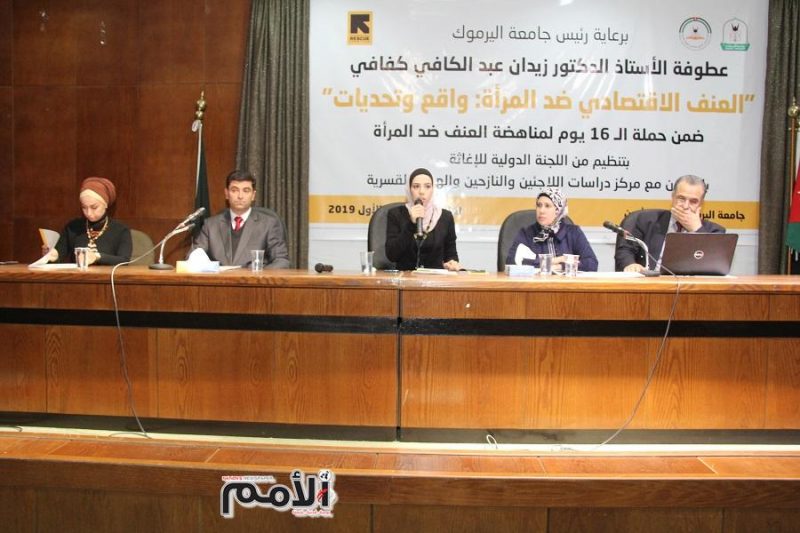 بمناسبة حملة 16 يوم لمناهضة العنف ضد المرأة، نظمت اللجنة الدولية للإغاثة، بالتعاون مع مركز دراسات اللاجئين والنازحين والهجرة القسرية في جامعة اليرموك ، فعالية العنف الاقتصادي ضد المرأة، “واقع وتحديات” تحت رعاية نائب رئيس جامعة اليرموك للشؤون الإدارية، الدكتور أنيس خصاونة،