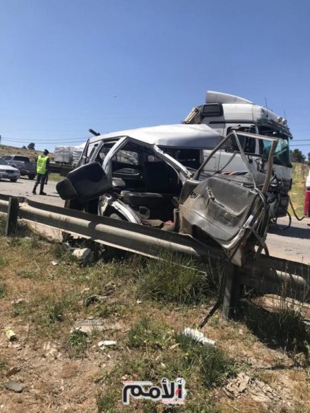 وفاتان و 4 اصابات بتصادم مركبة شحن وحافلة على طريق ارحاب