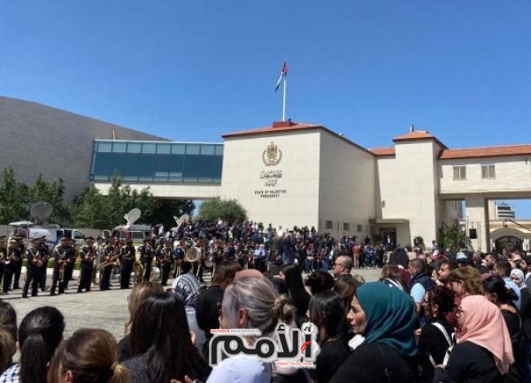 وانطلقت الجنازة من المستشفى بموكب عسكري رسمي، باتجاه مقر الرئاسة “المقاطعة” في مدينة رام الله.