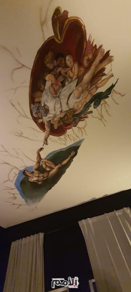 التصوير الحديث وصالة الرسم والتي رسم على سقفها لوحة بغاية الجمال تعيدنا الى