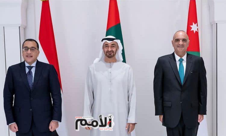 واكد سمو الشيخ محمد بن زايد آل نهيان رئيس دولة الامارات العربية المتحدة حرص دولة الامارات على تعزيز علاقاتها مع كل من الاردن ومصر وفتح آفاق أوسع للتعاون المشترك خدمة لمصالح البلدان الثلاث وشعوبها.