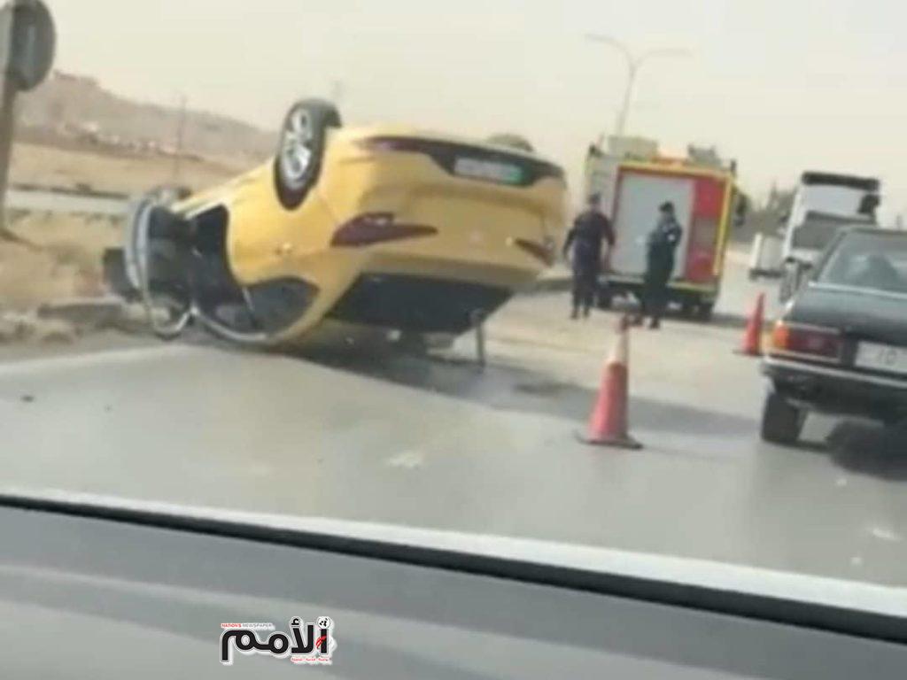 أظهر مقطع فيديو وقوع حادث سير صباح اليوم الأحد بين مركبتين على طريق الزرقاء الهاشمية بالقرب من استاد الأمير محمد، نتج عنه انقلاب المركبتين.