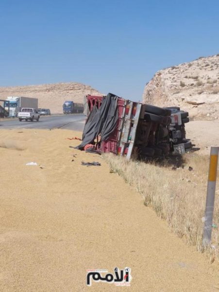 وقع حادث تدهور لشاحنة نقل كبيرة محملة بمادة الحبوب صباح اليوم الاثنين، على الطريق الصحراوي عند منطقة الحميمة، ما أدى الى اصابة السائق وسقوط الحمولة على حرم الشارع العام ما ادى لإغلاقه بشكل مؤقت.