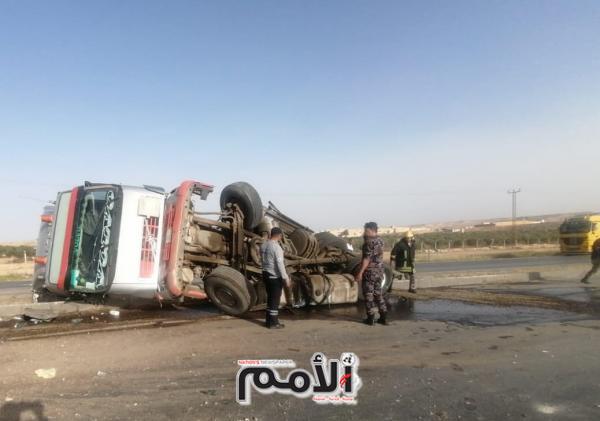 وقع حادث تدهور شاحنة كبيرة ما بعد الجامعة الهاشمية باتجاه اتوستراد المفرق صباح اليوم، ما أدى الى سقوط حمولتها على الطريق، وتم اغلاق المسرب القادم باتجاه الزرقاء، حيث تعمل كوادر الدوريات الخارجية والاشغال على إزالة الأثر المروري وإعادة حركة السير الى طبيعتها.