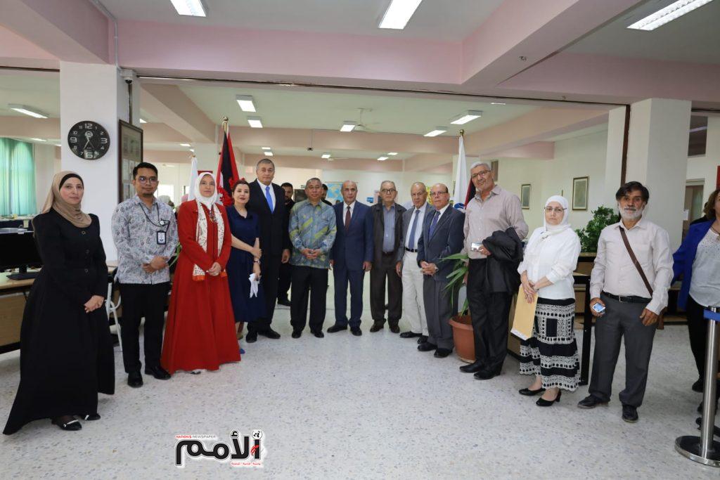 وتجول الرئيس والسفير في أرجاء المعرض الذي حضره الأستاذ الدكتور خالد السرطاوي نائب الرئيس للشؤون الأكاديمية والعمداء والمدراء وجمع من اعضاء هيئة التدريس والطلبة .