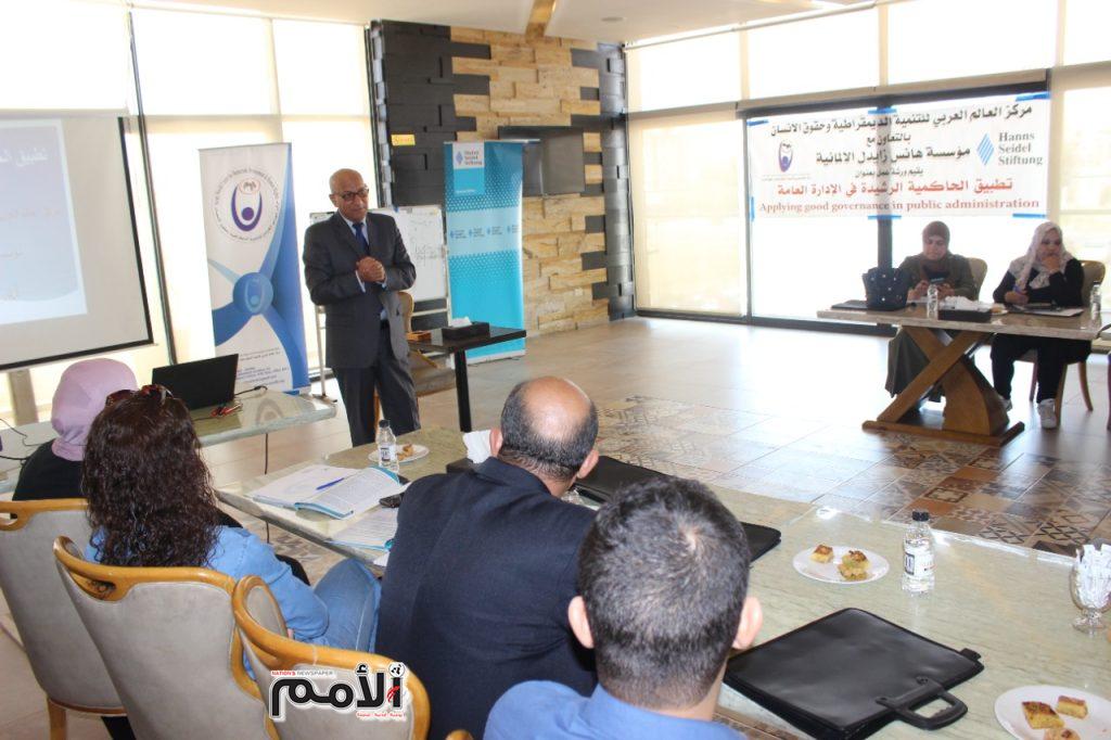 يواصل مركز العالم العربي للتنمية الديمقراطية وحقوق الإنسان وبالشراكة مع مؤسسة هانس زايدل الألمانية بعقد سلسلة ورشات حول الحاكمية الرشيدة، ويشارك فيها مشاركين يمثلون عدد من الوزارات و عدد من الشباب من مختلف المحافظات، وخلال اليومين يتحاور مع المشاركين المدربين الدكتور حمدي القبيلات والدكتور محمد الذنيبات.