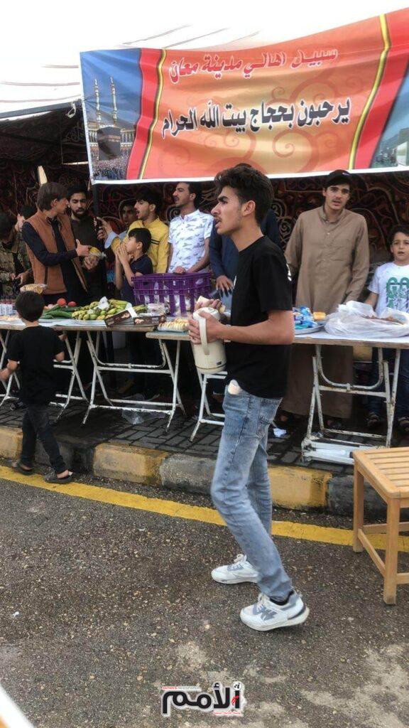 ويعرف عن أهالي معان استقبال الحجاج بحفاوة وتقديم الطعام والشراب لهم، وهي تقاليد لأهل المدينة منذ القدم بحسب. المتطوعه رهام الكريشان قالت أن ذلك المكان بقوم على خدمة حجاج بيت الله الحرام ويتم تقديم الخدمات الصحيه والاجتماعية وجميع انواع الماكولات من باب الحصول على مرضاة الله وابتغاء من وجه الله تعالى،
