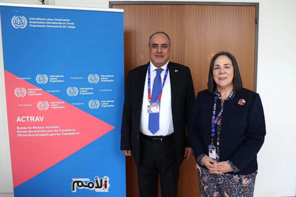 وبحسب بيان صادر عن الاتحاد اليوم الثلاثاء، جرى عقد الاجتماعين على هامش أعمال الدورة (112) من مؤتمر العمل الدولي، الذي يختتم أعماله الأسبوع الجاري في العاصمة السويسرية جنيف، ويشارك به اتحاد العمال ضمن وفد رسمي.