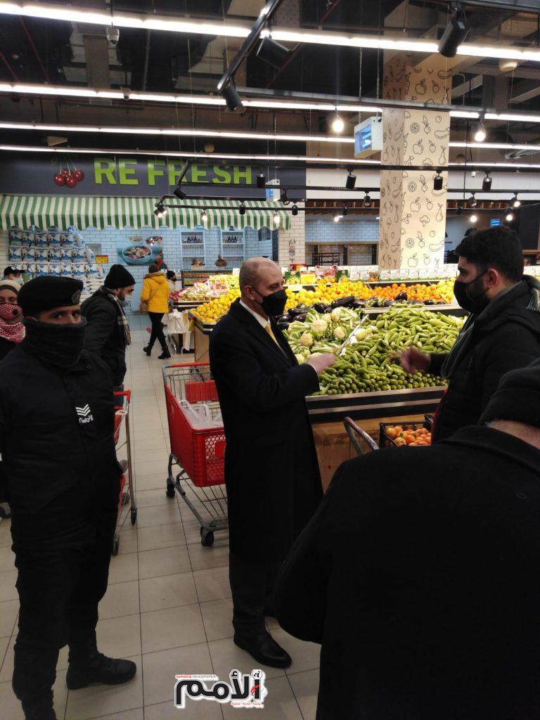 تفقد وزير الصناعة والتجارة والتموين يوسف الشمالي ظهر اليوم الأربعاء عددا من المولات ومحلات بيع المواد التموينية والخضار والفواكه ومخابز بهدف متابعة حركة التسوق والاطمئنان على وفرة السلع الغذائية سيما مع ارتفاع الاقبال من قبل المواطنين استعدادا للحالة الجوية المتوقع أن تشهدها المملكة اعتبارا من مساء اليوم .