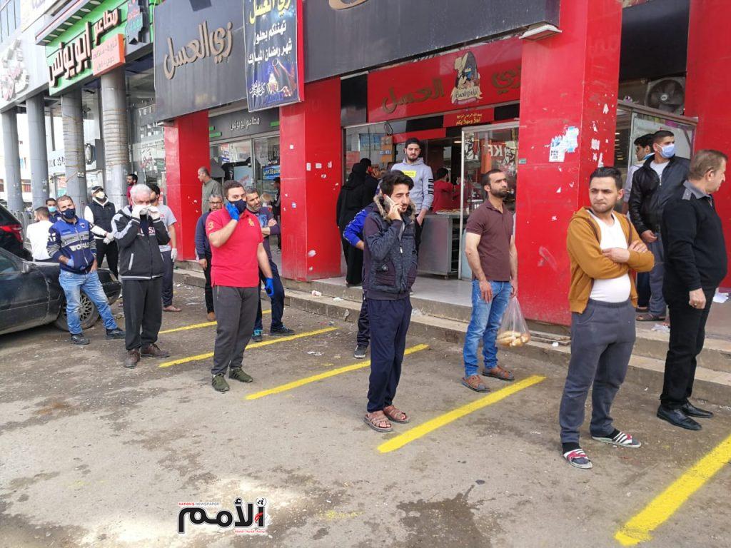 وقال رئيس بلدية الزرقاء المهندس عماد المومني بأن كوادر دائرة المرور قامت بالتخطيط امام المخابز والدكاكين والبقالات بمسافة متر بين كل خط لضمان مسافة آمنة بين المواطنين ولمنع الاختلاط اثناء عملية شراء الخبز والمواد الغذائية .