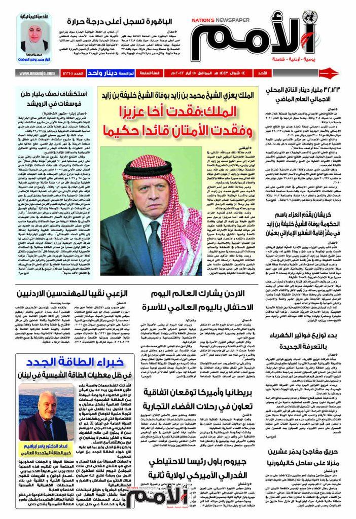 وعبَّر عن وقوف الأردن الدَّائم، قيادة وحكومة وشعباً، إلى جانب دولة الإمارات العربيَّة الشَّقيقة، ضارعاً إلى الله تعالى أن يتغمَّد الفقيد الكبير بواسع رحماته، وأن يُلهم الأهل والأشقاء الإماراتيين الصَّبر والسّلوان، وأن يحفظ دولة الإمارات الشقيقة قيادة وشعباً، لتواصل مسيرتها النَّاجحة على طريق الخير والمنعة والإنجاز، ولتبقى أنموذجاً في محيطنا والعالم أجمع.