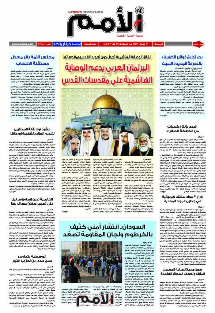 بدوره اكد نقيب الصحفيين الزميل راكان السعايدة ان موقف الأردن قيادة وشعبا تجاه القضية الفلسطينية وشعبها ثابت وراسخ من خلال الدفاع عن القضية الفلسطينية ومقدساتها .