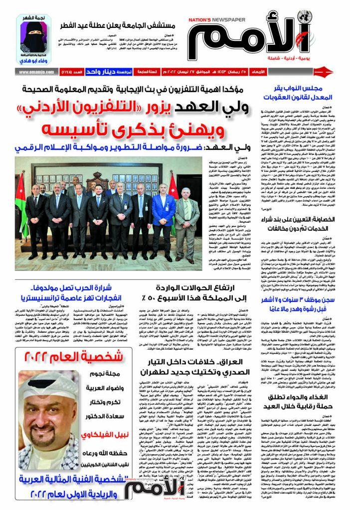 | – تسجل درجات الحرارة نهار اليوم الاربعاء، اعلى من معدلاتها العامة لمثل هذا الوقت من السنة بحوالي (3-5) درجات مئوية، وتكون الأجواء دافئة في المرتفعات الجبلية والسهول، وحارة في الاغوار والبحر الميت والعقبة، مع ظهور الغيوم على ارتفاعات مختلفة، وهناك فرصة لسقوط زخات من المطر في شرق المملكة قد يصحبها الرعد احياناً، والرياح شمالية شرقية الى شمالية غربية معتدلة السرعة تنشط أحياناً. وفي ساعات المساء والليل، تصبح الأجواء لطيفة الحرارة بوجه عام، مع ظهور الغيوم على ارتفاعات متوسطة وعالية، والرياح شمالية شرقية الى شمالية غربية معتدلة السرعة. وتحذر دائرة الأرصاد الجوية من احتمال تدني مدى الرؤية الأفقية بسبب الغبار في مناطق البادية. |