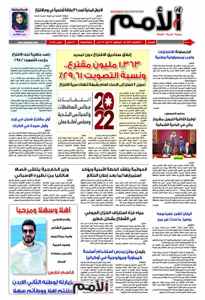 23. وردت معلومات تفيد بقيام أحد ضباط الأمن العام بإخلاء المندوبين والمراقبين من أحد قاعات الاقتراع بناءً على أوامر – وفق ما ذكر الضابط شخصياً – وذلك في مدرسة المأمونية الوسطى للذكور في محافظة مادبا، وتم تعطيل عملية الاقتراع؛ حيث يتم الآن تدقيق معلومات الاقتراع بمعزل عن المراقبين والمندوبين.